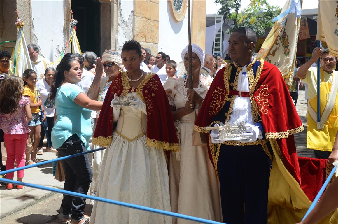 No domingo da festa há missa solene, com a presença do Rei e da Rainha vestidos à caráter, que chegam à igreja com a procissão das bandeiras, trazendo nas mãos coroa e cetro. É costume, após a missa, haver distribuição de doces para o povo, memória do tempo em que “escravo só comia doce na Festa de São Benedito”.